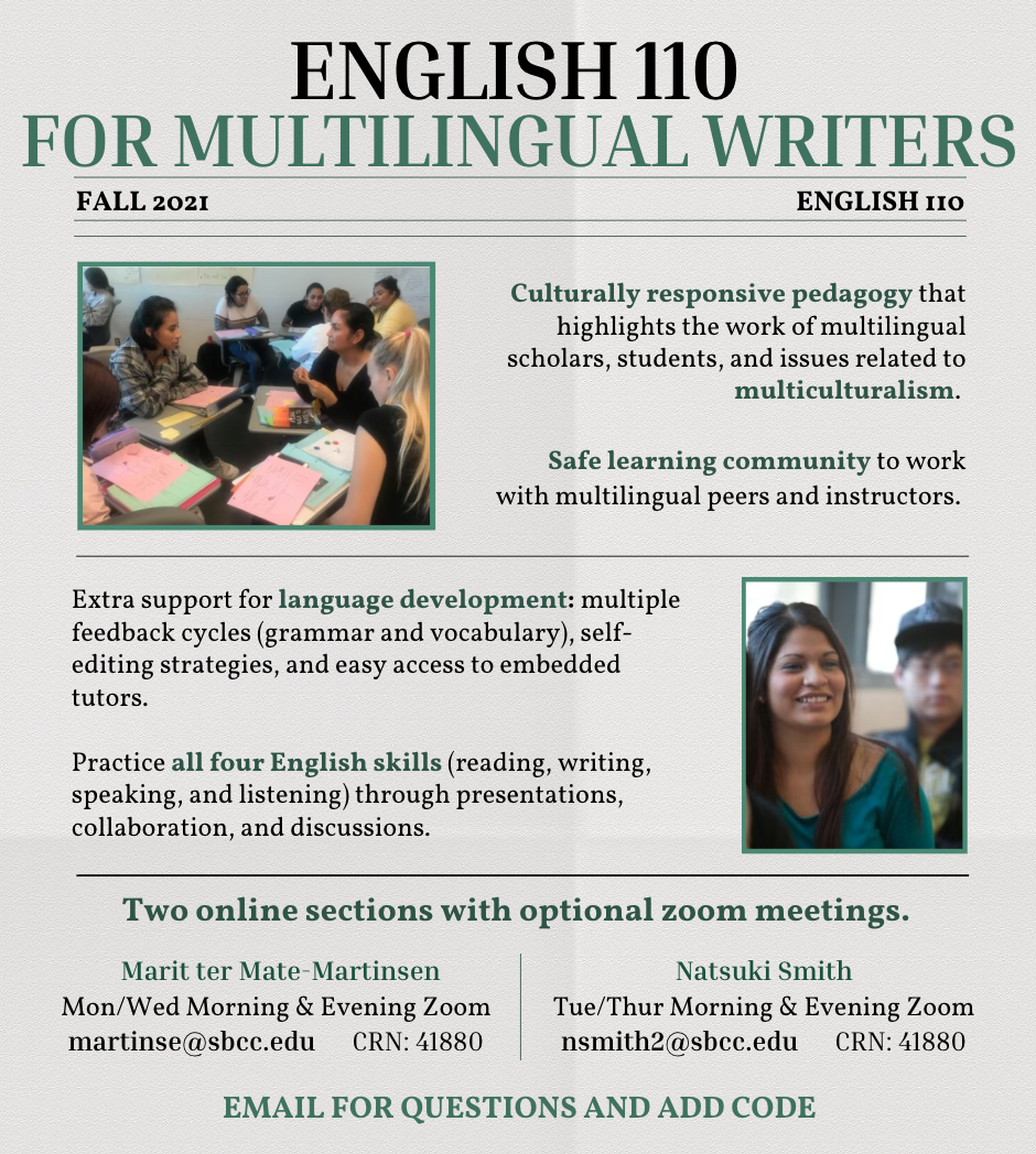 - When registering for an English class, look for the "MT" on the class schedule